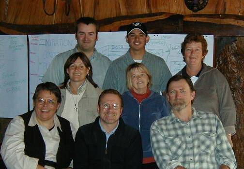 2004 Imbizo (Zulu work for a meeting) participants, from left to right, in the back row Glenn Bowdin, Matthew Gonzalez, and Jane Spowart (guest); in the middle row Janet Landey and Kathy Nelson; and in front Julia Rutherford Silvers, Joe Goldblatt, and Bill O'Toole.