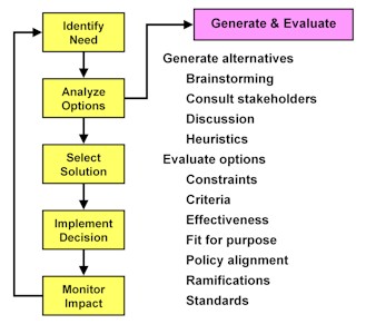 been defined, you must generate and evaluate the potential options for