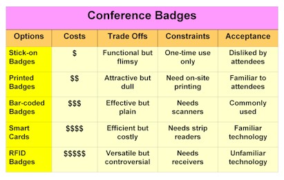 that would go into a decision about what type of conference badge to use